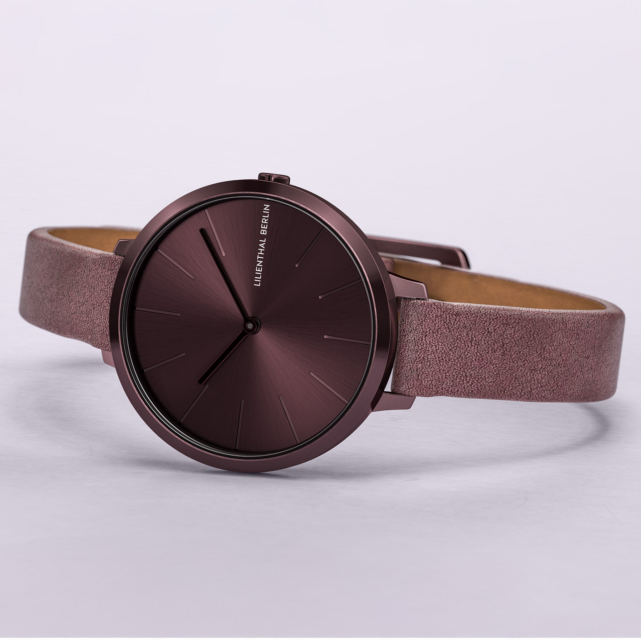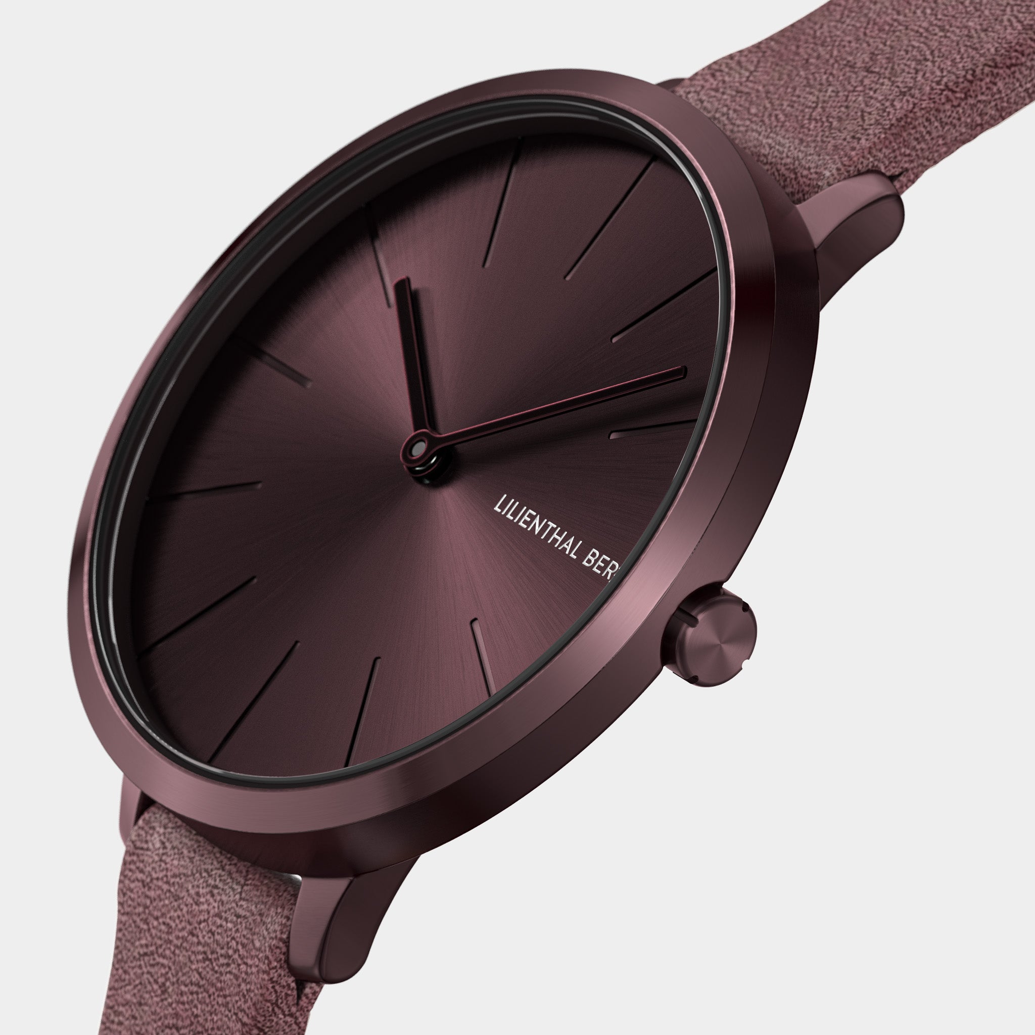 - Elegance in Monochrome: The matte-brushed case and sunray dial are wrapped in a deep burgundy hue, creating a seamless, tone-on-tone aesthetic.