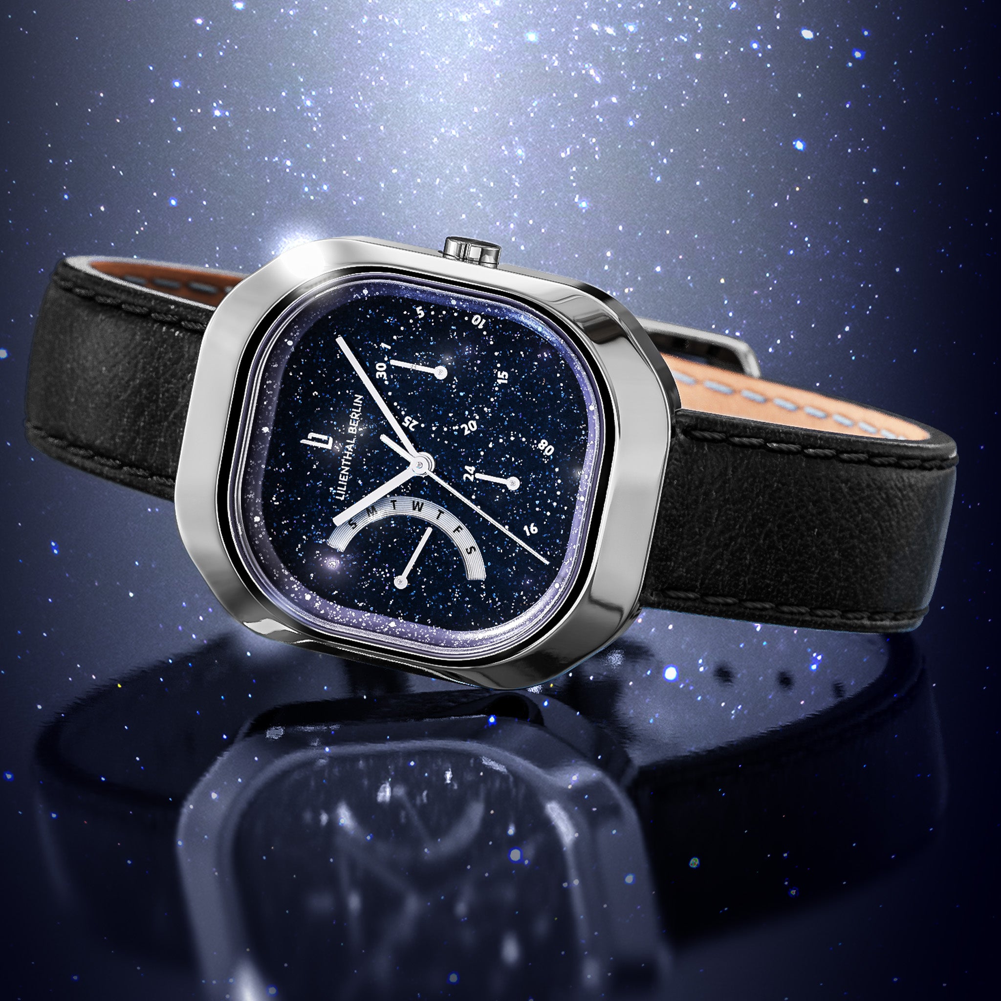 - Effetto lucido raffinato: il quadrante è ricoperto da una superficie cristallina che scintilla a ogni movimento. Con lancette sottili, piccoli elementi Superluminova e indicazioni di data e giorno, presenta una certa complessità pur essendo perfettamente leggibile.