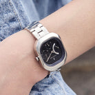 - Élégance sculpturale : Le boîtier rectangulaire aux coins légèrement arrondis crée une silhouette raffinée, faisant de cette montre un véritable bijou au poignet.