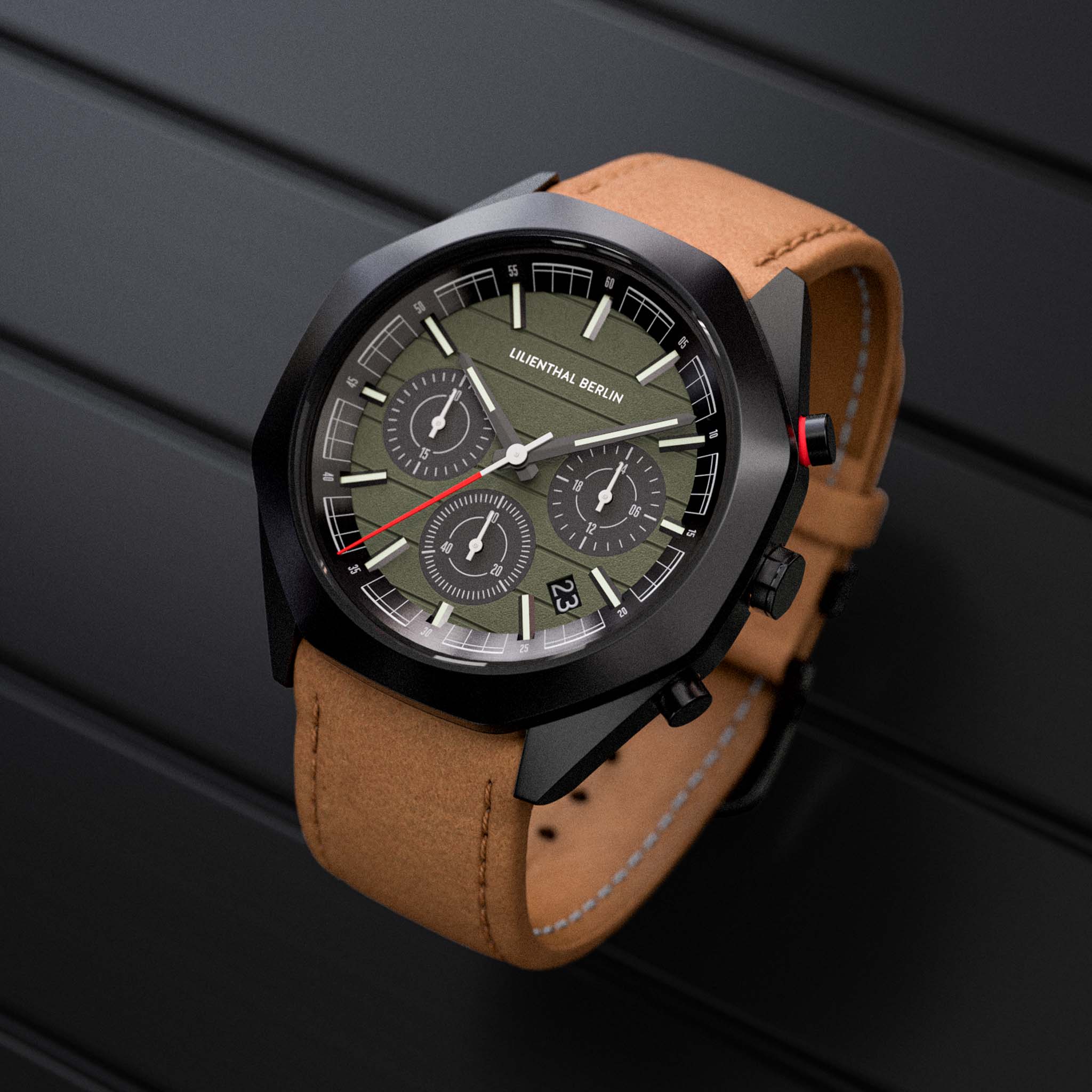 - Fonctionnement précis et clair : Fonction chronographe, compteur 24 heures, date – tout est clair d'un seul coup d'œil. Le design se concentre clairement sur la fonctionnalité essentielle.