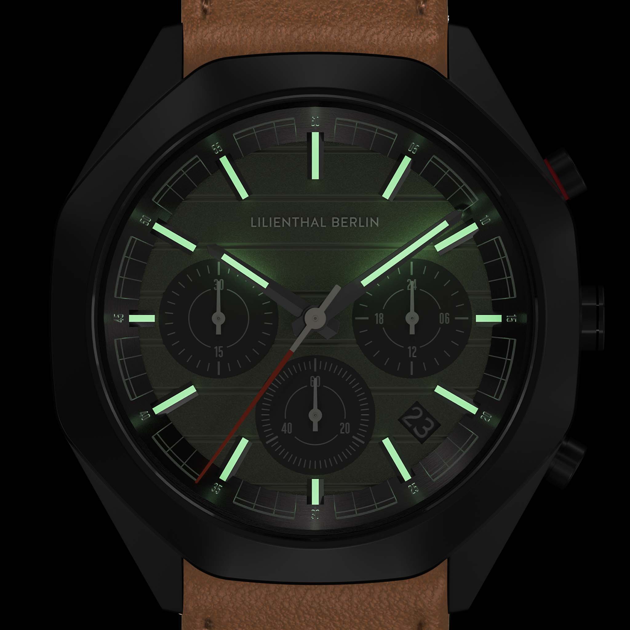 - Design robuste pour chaque aventure : Boîtier octogonal noir mat, cadran vert olive et bracelet en cuir créent un look distinctif. Les aiguilles Superluminova assurent une lisibilité optimale dans toutes les conditions.