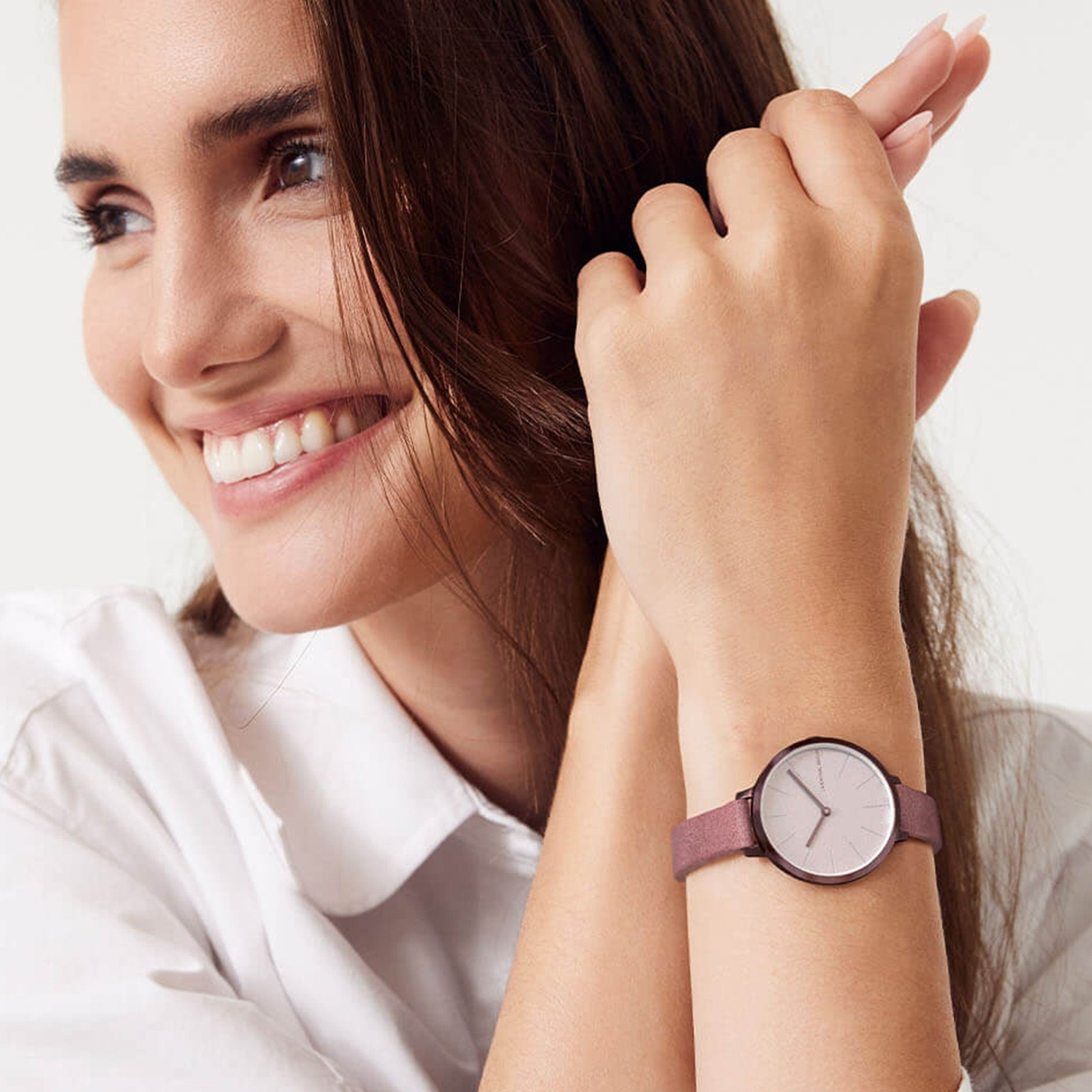 - Aufregende Kombi: Das 30 mm Gehäuse in frischem Burgundy, dazu ein Zifferblatt in seidigem Weiß - diese Farbkombination ist einfach hinreißend.