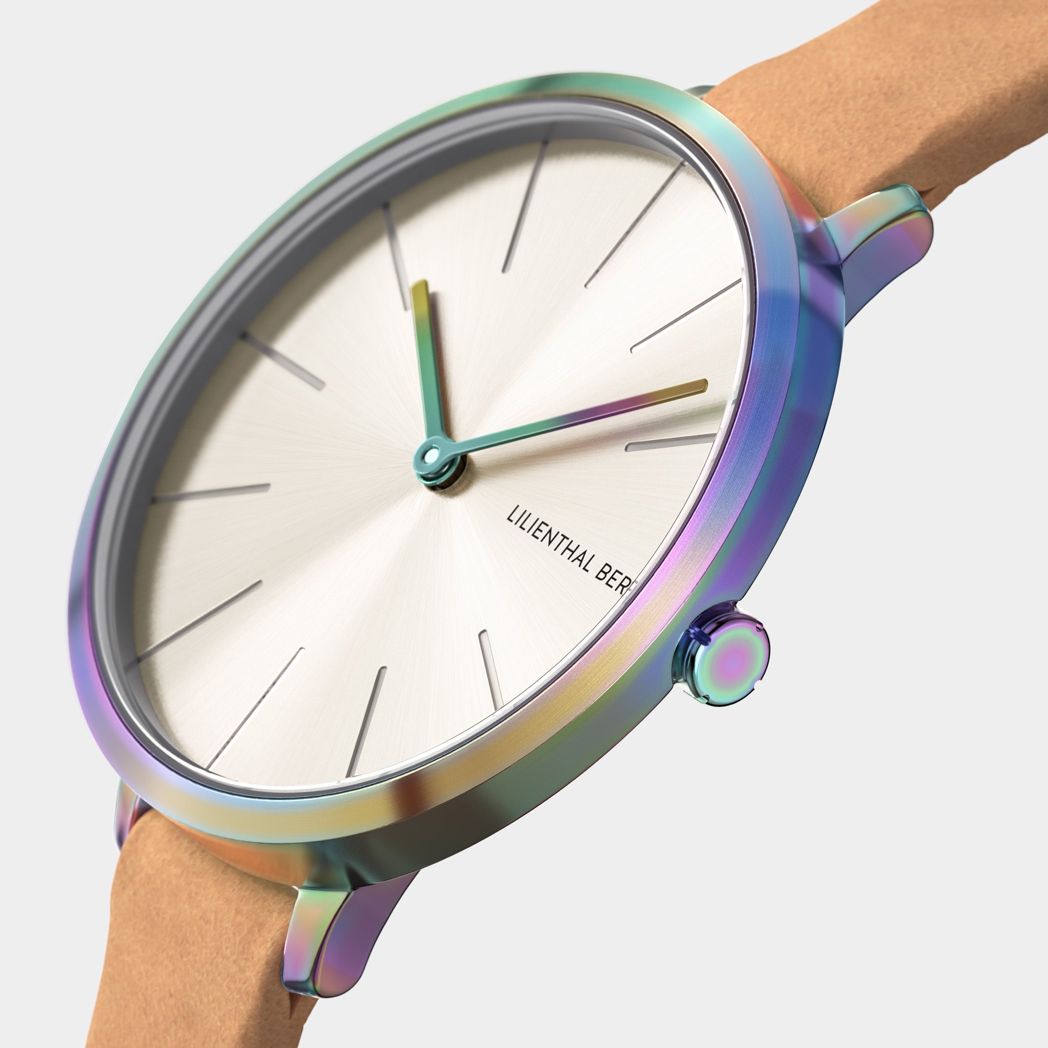 - Élégance scintillante : Le boîtier de 30 mm arbore un motif arc-en-ciel personnalisé, tandis que le cadran offre un effet brillant unique. Un véritable statement pour une vie colorée !